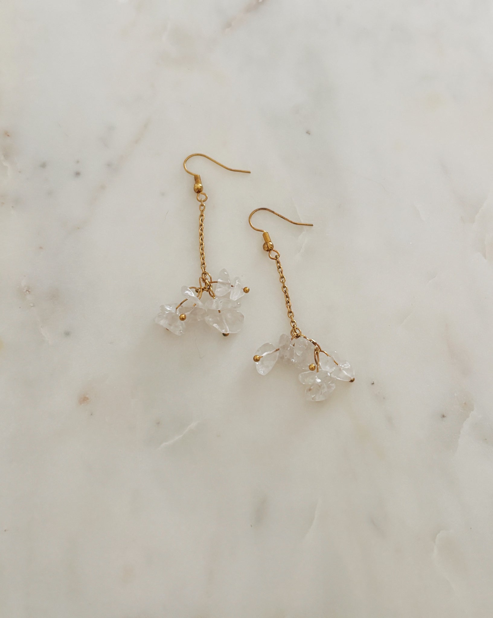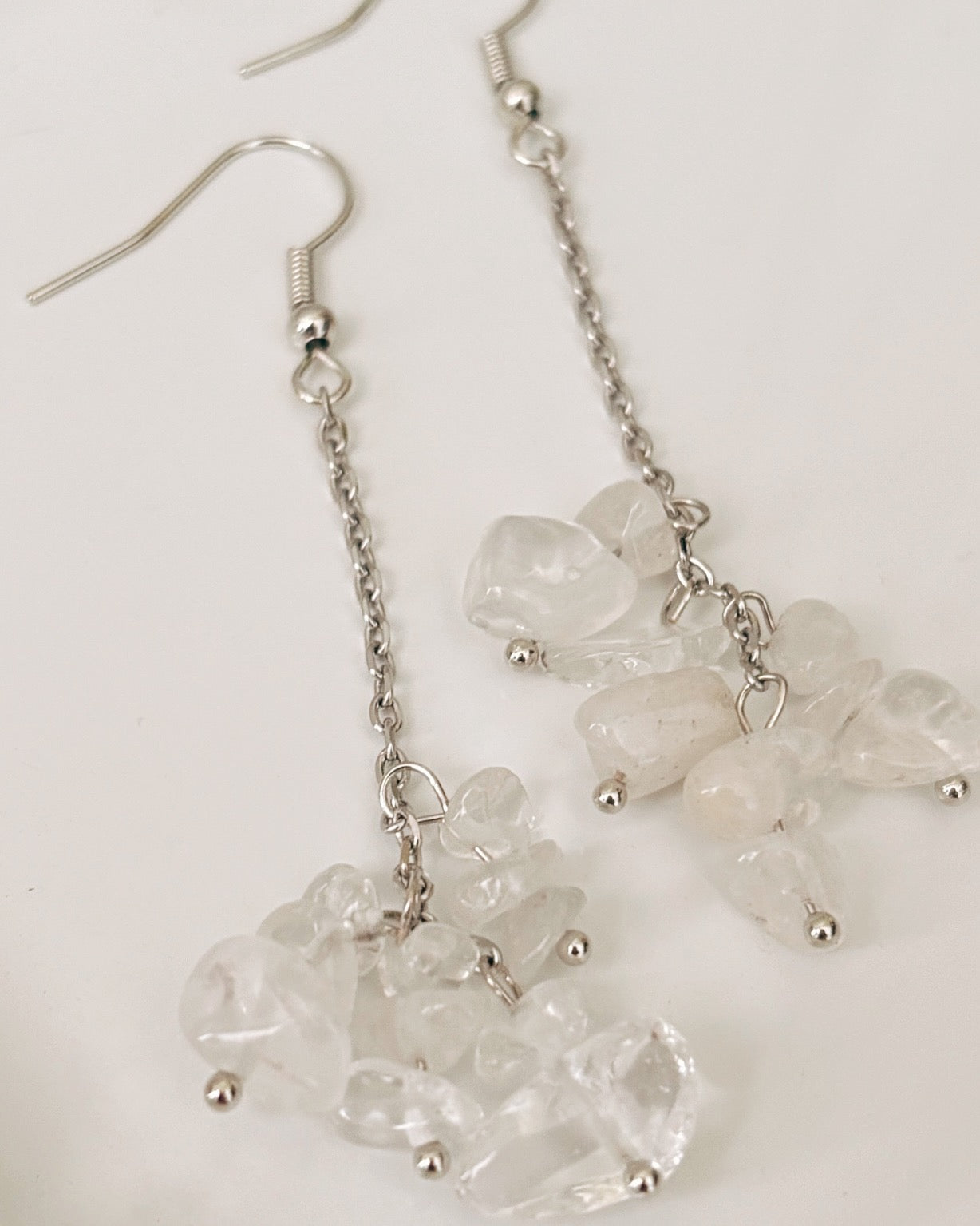 boucles d'oreilles faites d’acier inoxydable et de quartz